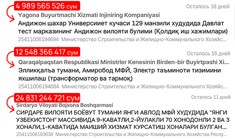 Parametrlarni o‘zingizga moslashtirasiz: qiziqtirgan sohangizni (qurilish, IT yoki uskunalar yetkazib berish) va viloyatingizni (shahar, viloyat yoki butun mamlakat) tanlaysiz. Bu faqat sizga mos keladigan lotlarni ko‘rish imkonini beradi.